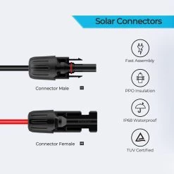 - Plug-n-play design with universal solar connectors on one end for the solar panel connection and a 5.5×2.1 mm dc connector on the other end for the portable power station connection, the adapter cable connects almost any solar panels to phoenix200 portable power station without the need of additional tools