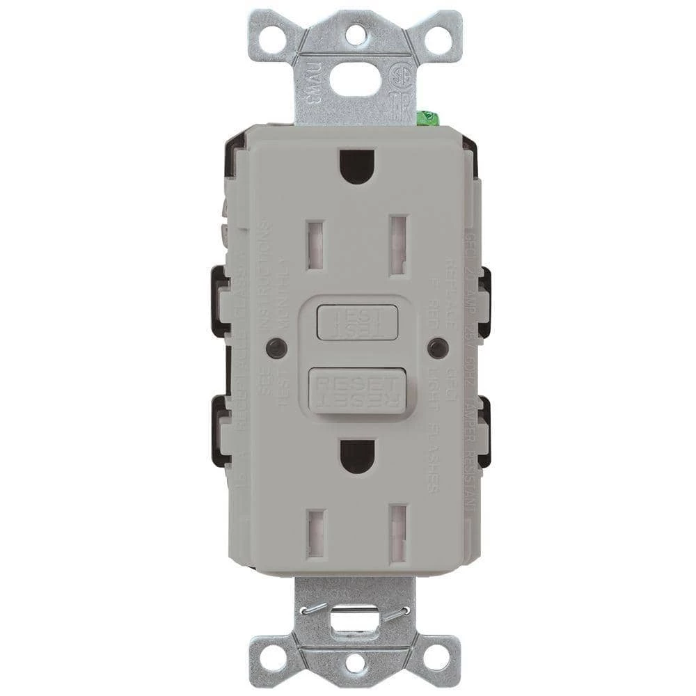 Coordinate your lighting controls and switches with receptacles to complement your decor. This receptacle has a test/reset button but also automatically checks every 30 seconds to see if it everything is functioning properly. There is an LED indicator that will turn red if the unit is no longer working as it should. There is also a tamper resistant shutter mechanism to prevent someone from sticking something into the receptacle and causing injury. Installing a receptacle is easy and can be done in as little as 15 minutes. Coordinating wall plate not included.