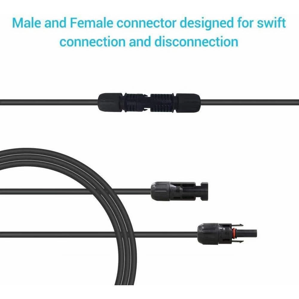 The Renogy Solar Panel Extension Connectors allow you to make spatial adjustments to your solar power system in one simple step. This extension cable runs between the solar panel and charge controller or between two solar panels, allowing for greater space between both items. Like all other Solar Panel Extension Connectors, this product allows for greater customization of the solar power system.