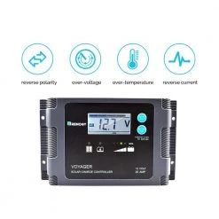 - Negative-ground charge controller for compatibility with an RV, boat, trailer, etc. the low-voltage system avoids electrical shock hazards