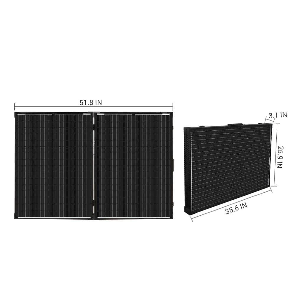 This portable solar panel is perfect for the adventurous traveler, providing both convenience and dependability when venturing off the grid. The Renogy 200-Watt Solar Suitcase comes with two 100-Watt Monocrystalline Solar Panels, one 15 in. set of wires with Male and Female Connectors, and one protective soft case for safe portability. With its adjustable aluminum stand, latches, and heavy duty handle, this 200-Watt Solar Suitcase will change the way the world looks at portable power.