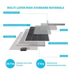 - 【Reliable】Advanced encapsulation material with multi-layered sheet laminations enhance cell performance and provide a long service life; EL-tested solar modules; no hot-spot heating guaranteed