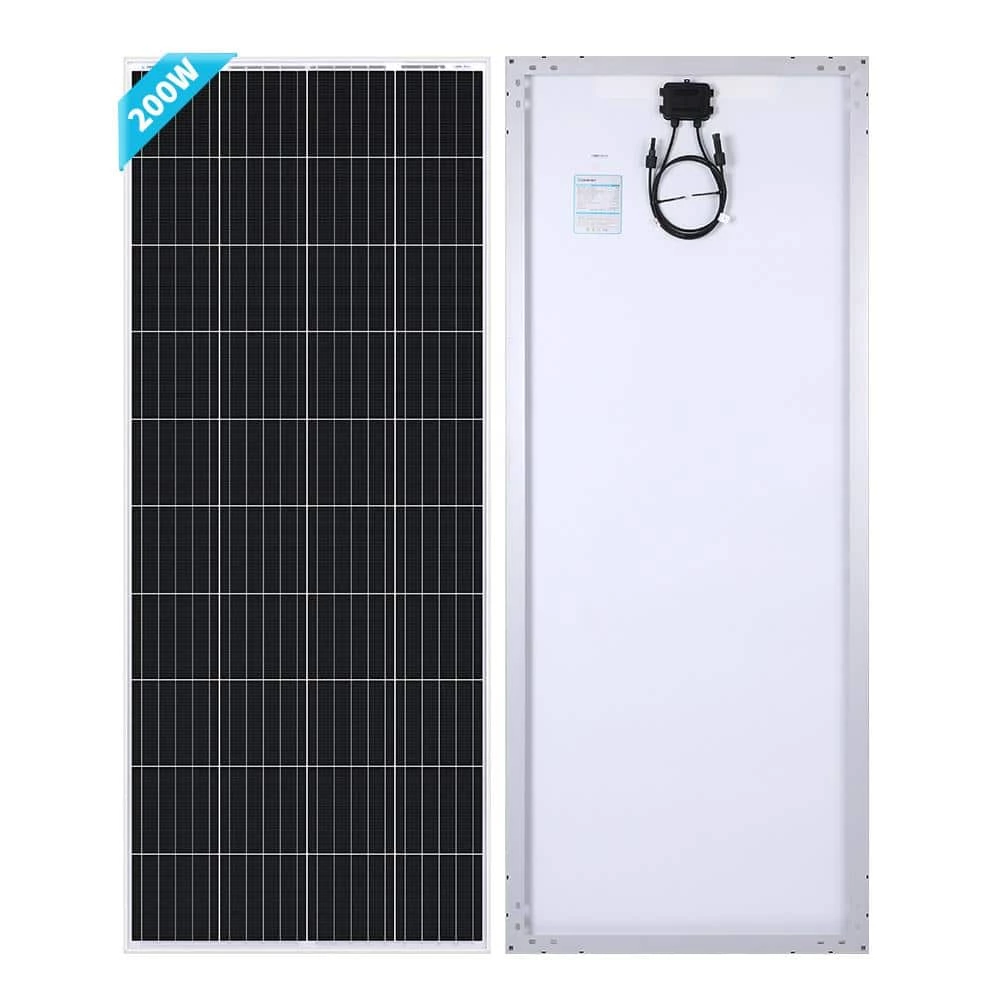 The Renogy 200 Watt 12 Volt Monocrystalline Solar Panel is one of the main components for any solar power (PV) system. The panel includes solar connector leads that extend from the junction box affixed to the back. The connector leads are compatible with the Renogy Solar Adaptor Kit-allowing for a quick and simple connection. Each Renogy 200W Monocrystalline Solar Panel is quality tested to ensure safety and longevity. Built durable for outdoor use, these panels are capable of withstanding heavy snow and strong wind loads. Whether you plan to use the solar panel for seaside travels to the beach or your cabin in the mountains, this panel can be a great start or addition to any Renogy off-grid system!