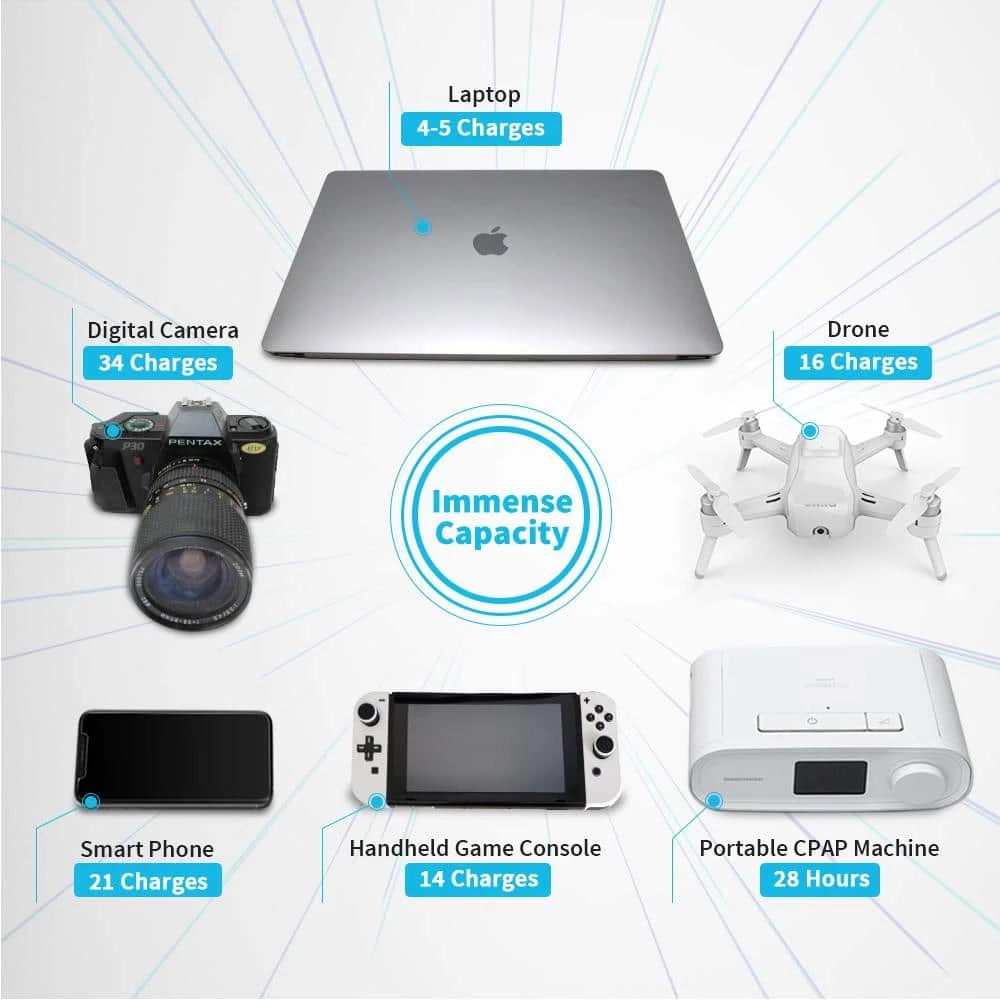 - Two 110V AC outlets deliver stable 200W power for charging anything from laptops, tablets and smartphones to handheld video game consoles, drones, cameras, mini-fridges, lights, speakers, TVs, CPAP machines and much more