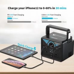 - Equipped with 60W quick charge Type-C port and 18W USB-A port for 60% faster charging time