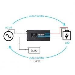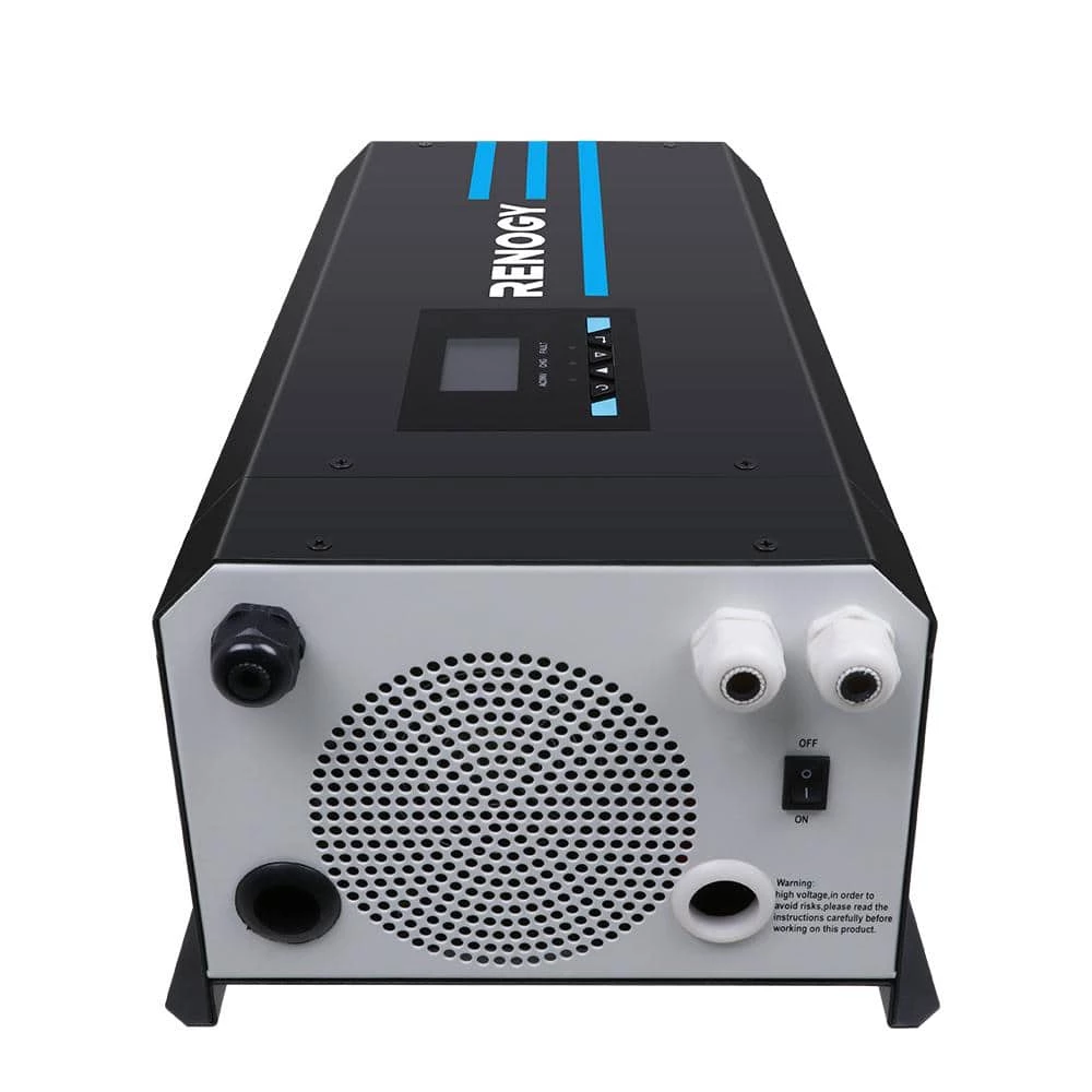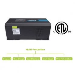 The Renogy 3000-Watt Pure Sine Wave Inverter Charger can be used for multiple applications when going off-grid. A power inverter is an electrical device that transforms the DC power stored in a battery bank into standard household AC power for a user’s electronic needs. This device can also charge and maintain a battery bank when connected to shore power and now compatible with Lithium batteries. With a low transfer time, power remains uninterrupted when switching from solar to shore power. This creates clean and silent energy without having to worry about losing access to connected devices and appliances. The Renogy 3000-Watt Pure Sine Wave Inverter Charger is a perfect back-up power source.