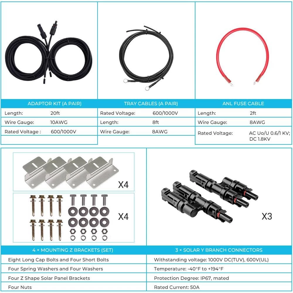 - 【Full System Protection】 Meant to safeguard your system, the self-diagnostic capability can assess and protect against reverse polarity, battery overcharging, battery over-discharging, overload, short-circuiting, and reverse current. Equipped with an In-line fuse and ANL fuse components, devised to add overcurrent protection on your charge controller and battery bank.
