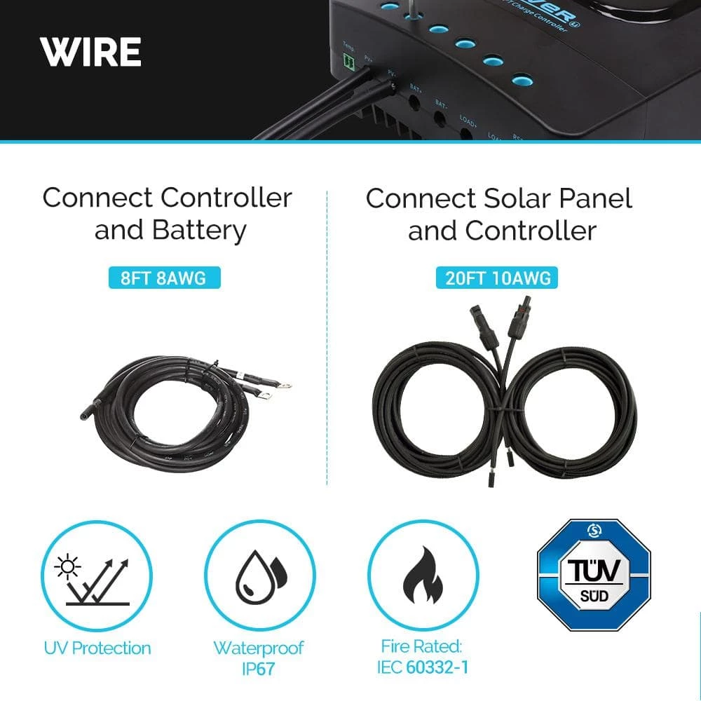 - This kit includes our 40A MPPT charge controller which uses Maximum Power Point Tracking technology, transferring power up to 30% more efficiently than PWM charge controllers.