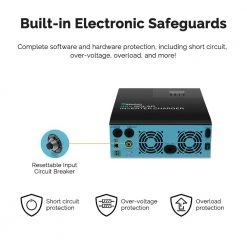 Renogy’s 3500-Watt 48-Volt Solar Inverter Charger combines solar charging, AC/generator battery charging, and battery inverting into 1 convenient solution to take your Off-Grid system to the hybrid level. Compatible with 48-Volt battery banks, this solar inverter charger gives you the ultimate control with 4 user-configurable AC/Solar Charging modes and 3 Load Output modes that can turn your system into an uninterruptible power supply (UPS). Power-packed with the latest MPPT and Battery Charging technology, you can be sure that the charge controller is capturing maximum solar energy in real-time and using the 120 Amp battery charger to ensure the best system performance. Observe your overall system with the integrated LCD screen, capable of showcasing all input/output system information and identifying any potential errors. This reliable, solar pure sine wave inverter charger has built-in electronic safeguards to protect you and your system. Equipped with multiple features and modes, the Renogy Solar Inverter Charger is a powerful addition to any 48-Volt system.