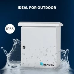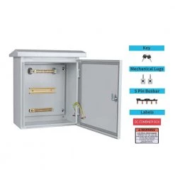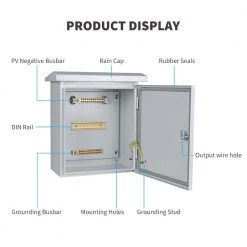 The Renogy 5 Strings Solar Combiner Box is the ideal solution to combine inputs from up to 5 strings of solar panels into a single output. It accepts up to five 1P miniature circuit breakers and one 2P surge protective device for improved safety of the solar system. The built-in standard DIN rail enables easy installation of the protection devices. Equipped with a rain cap and rubber seals, the grey steel enclosure is designed to survive in outdoor environments. The knockouts are reserved for waterproof strain reliefs or conduits.