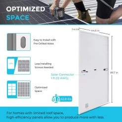 - High-powered module, this solar panel is engineered with high-efficiency PERC (Passivated Emitter and Rear Contact) cells, capturing more light to achieve 22.8% conversion efficiency, resulting in higher performance than most conventional panels, Renogy’s 550-Watt panels provide more output per surface area