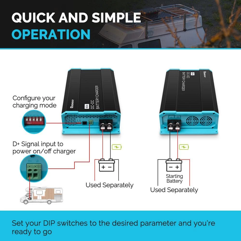 The DCC12 Series battery chargers are the most effective way to charge your auxiliary or house batteries from the alternator/starter battery. Compatible with a multitude of alternator types, the DCC12 offers correct charging for AGM, Flooded, Gel, and even Lithium deep cycle batteries! Featuring a 3-stage battery charger and multiple electronic protections, owners can feel confident that their batteries are being charged optimally and automatically. For added safety to personnel, the DCC12 isolates the input from the output preventing incorrect voltage transmission. Easily install the compact yet sturdy DC1212 on RV’s, commercial vehicles, boats, yachts and many more applications!