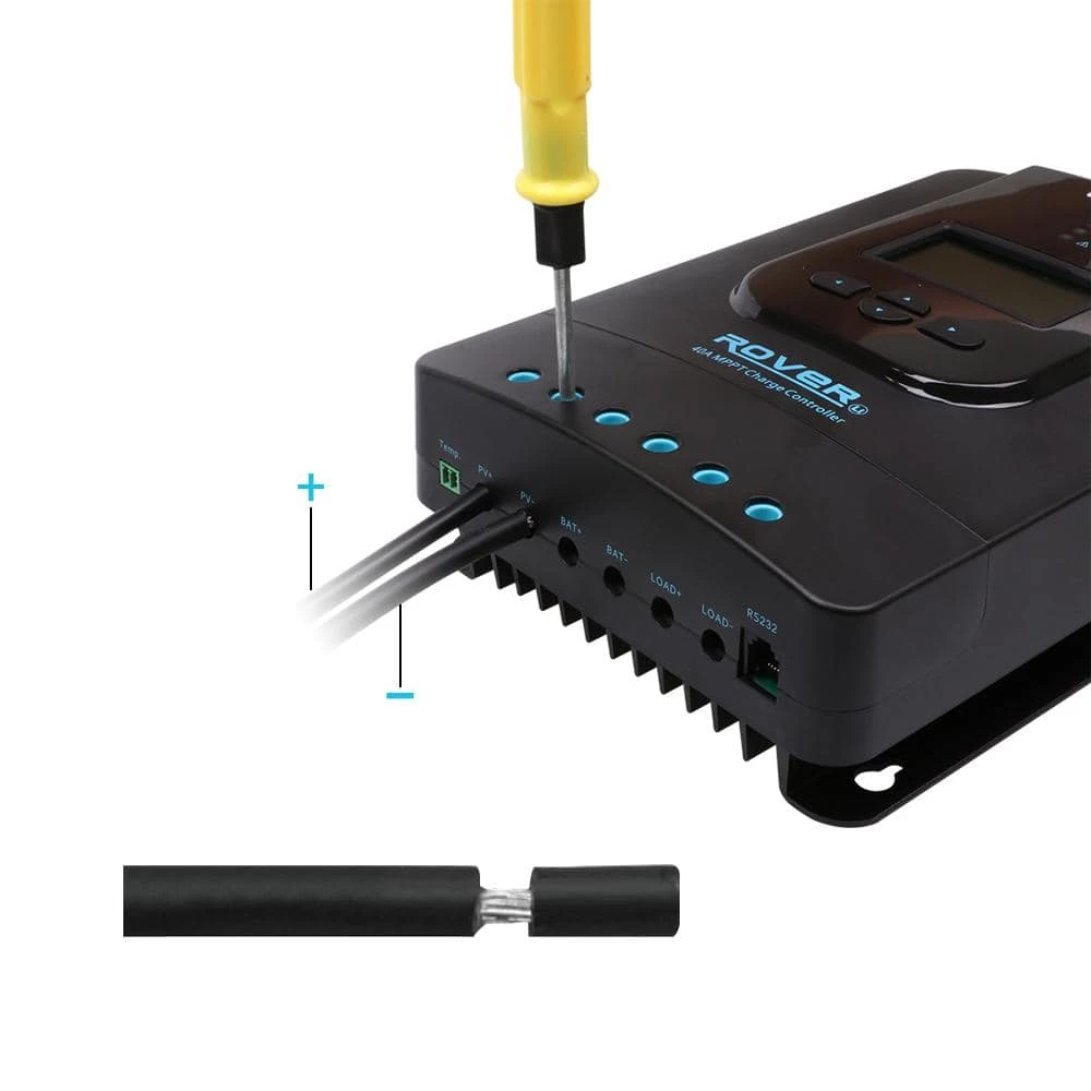 Connect your charge controller to the battery with a pair of Renogy high-quality copper tray cables. Specialized with battery rings on one end for effortless connection to your battery and exposed stranded wire on the other end to lead directly into your charge controller, this wire makes the system set up as easy as can be!