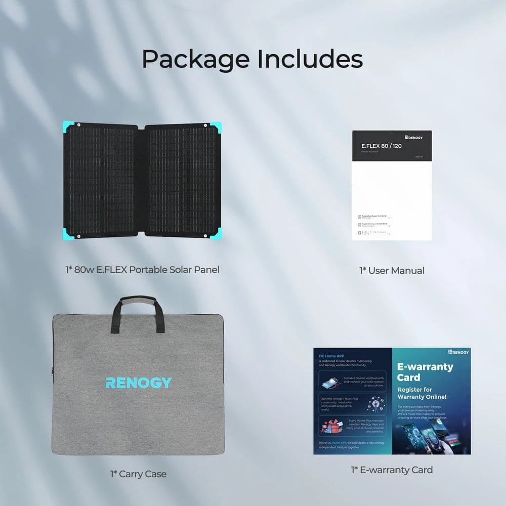 The Renogy EFFLUX Series is ready to generate electricity wherever the sun shines, providing a flexible charging solution for portable power stations or off-grid DC batteries. The EFFLUX 80 portable solar panel is compatible with the new Phoenix 200 power station and most solar generators on the market with the connector cable (sold separately). The PERC solar cell technology used in the EFFLUX solar panel has a conversion efficiency of up to 22%. The ETTE-laminated case and IP67 water-resistant rating offer ultra protection and durability, extending the panel’s lifespan. The Renogy EFFLUX Series solar panels are perfect for road trips, camping, RVing and over-landing.
