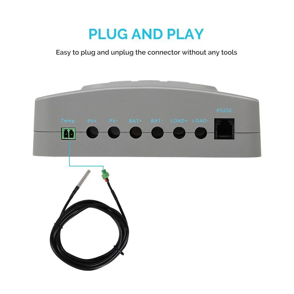 Perfect for solar systems that experience varying temperature changes throughout the year, Renogy’s temperature sensor optimizes battery performance and extends its lifespan. Compatible with most of Renogy’s flagship MPPT and PWM charge controllers, the temperature sensor uses the ambient temperature around the battery to accurately provide temperature compensation. This ensures that your battery is receiving an accurate and proper charge. Enhance your solar system with a temperature system today please note that the RTSCC-G1 is not compatible with lithium batteries.