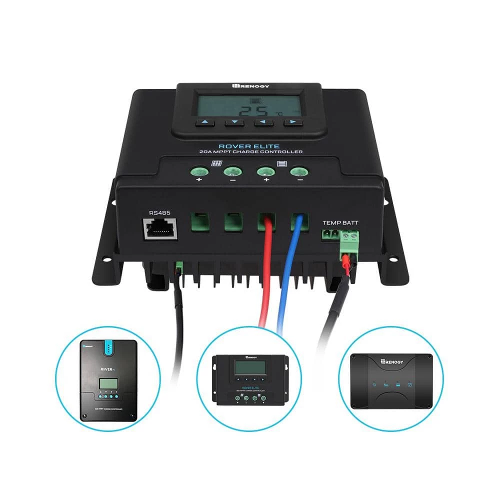 - Compatible with Renogy Rover Li 60 amp/100 amp and Rover Elite 20 amp/40 amp charge controllers as well as the 50 amp DC-DC MPPT battery charger