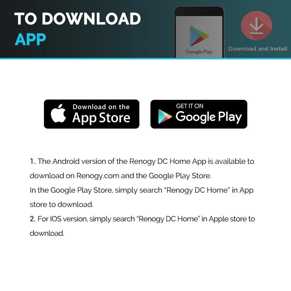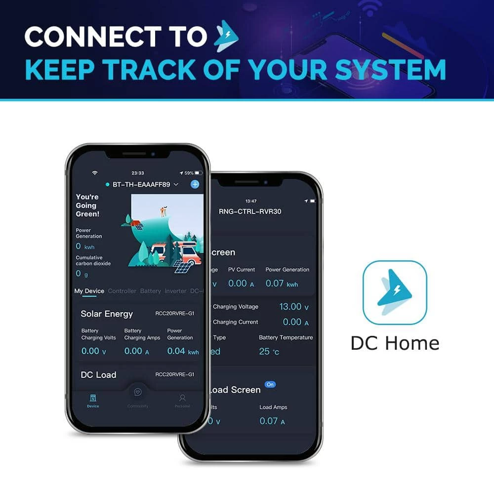 - Connect to our user-friendly smartphone application, Renogy DC home, to keep track of your system