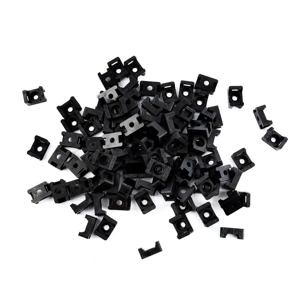Keep your cord bundles or individual cords even more secure and out of the way by adding QualGear CM1-B-100-P Cable Tie Mounts. Made of durable plastic, each one features a screw hole for sturdy mounting onto a server rack, drywall or other surface. These black cable tie mounts come in a pack of 100.