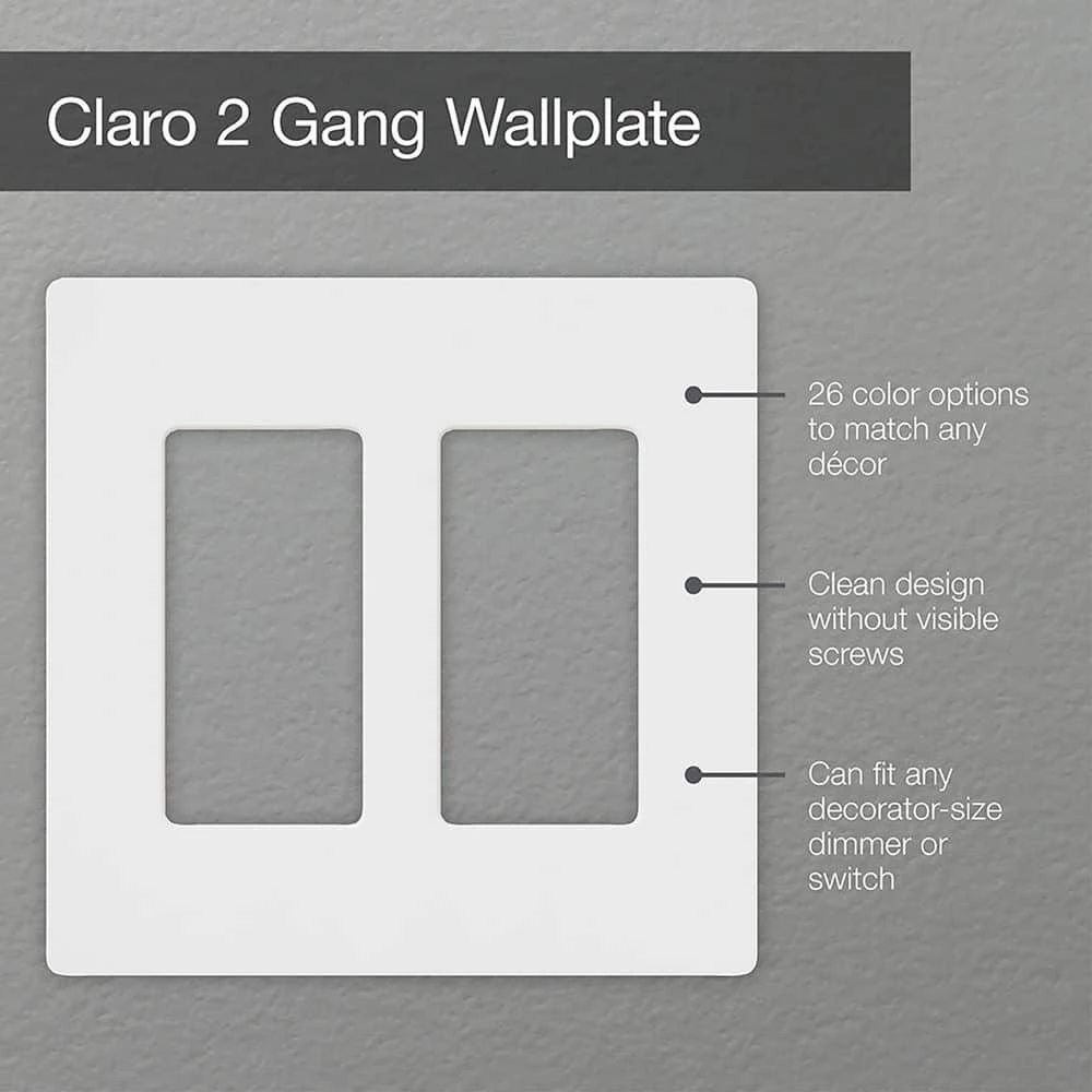 Claro wallplates are a simple and elegant solution designed to match your existing decorator opening dimmers, switches and accessories. They feature a clean appearance with no visible screws and mount flush to the wall. Claro wallplates are oversized to hide gaps around wallboxes and attach securely and snugly in place regardless of the wall condition. Claro wallplates are easy to install. Simply separate the front and back plates, attach the back plate to the wall with the screws provided and snap on the front plate for a clean and sophisticated look in just minutes.