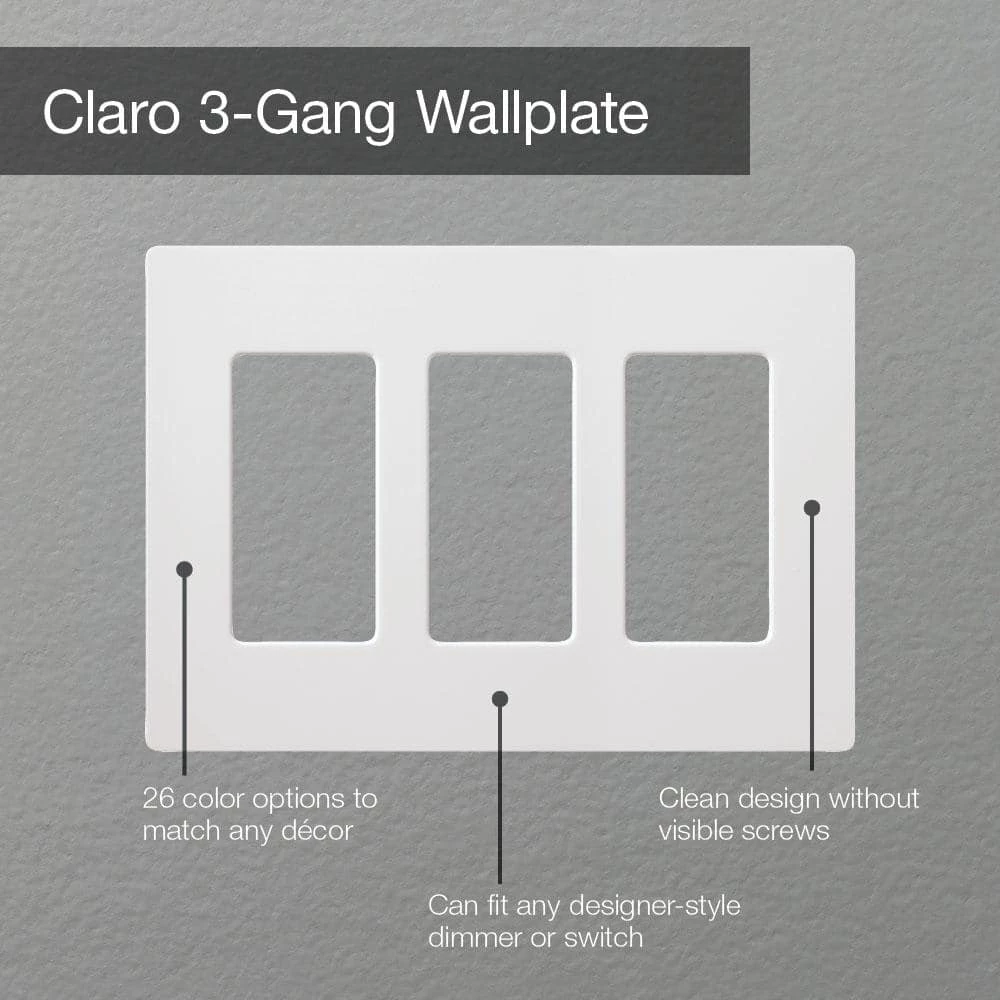 Claro wall plates are a simple and elegant solution designed to match your existing decorator opening dimmers, switches and accessories. They feature a clean appearance with no visible screws and mount flush to the wall. Claro wall plates are oversized to hide gaps around wall boxes and attach securely and snugly in place regardless of the wall condition. Claro wall plates are easy to install. Simply separate the front and back plates, attach the back plate to the wall with the screws provided and snap on the front plate for a clean and sophisticated look in just minutes.