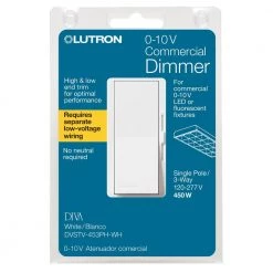 Diva 0-10-Volt dimmer switch is a simple solution designed to match existing decora-style switches and accessories. This Diva dimmer switch is a 0-10-Volt DC Dimmer to control 0-10-Volt LED and Fluorescent fixtures in single-pole or 3-way applications. Easily turn the lights on and off with the large paddle switch and use the slide control to adjust the lights to the perfect level. This control also features an easy adjustment of low-end and high-end trim to maximize dimming range. No separate power pack required. Coordinating wallplate sold separately.