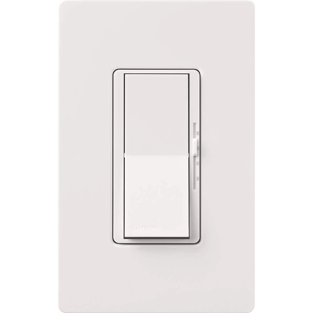 Control your lights and fan with this Diva Fan Control and Light Switch for LEDs, CFLs, Incandescent and Halogen Bulbs, with Wallplate, White. The paddle switch allows you to turn the lights on and off. Next to the paddle switch is a slider that allows you to adjust the fan speed. Prepare for an easy installation process that should last less than 15 minutes.