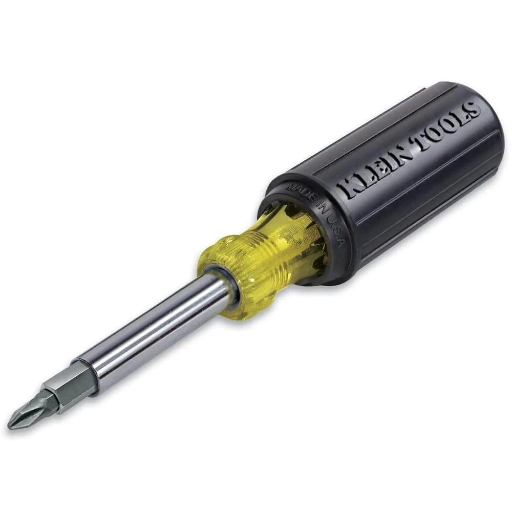 - With Klein screwdriver and nut driver: Includes 3/8 in., 5/16 in. and 1/4 in. nut drivers, #1 and #2 Phillips, 1/4 in. and 3/16 in. slotted, T10 and T15 TORX, and #1 and #2 square recess