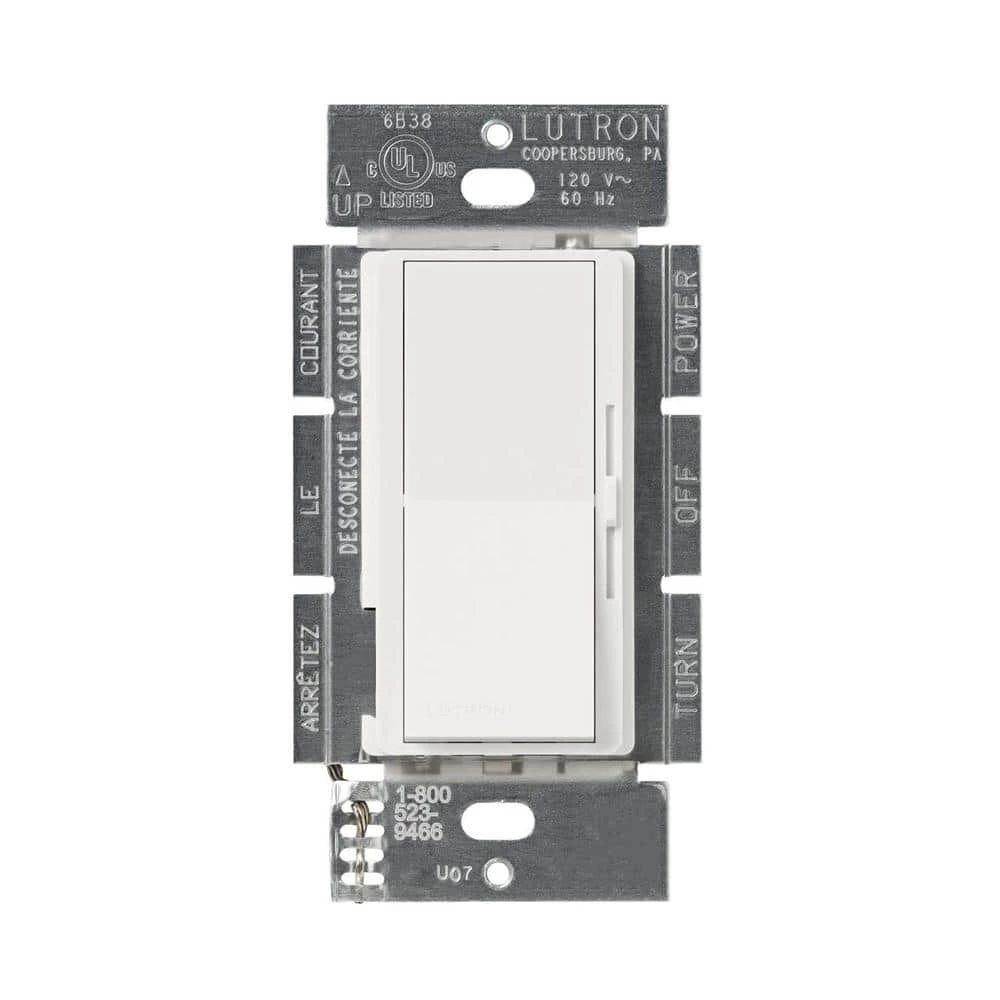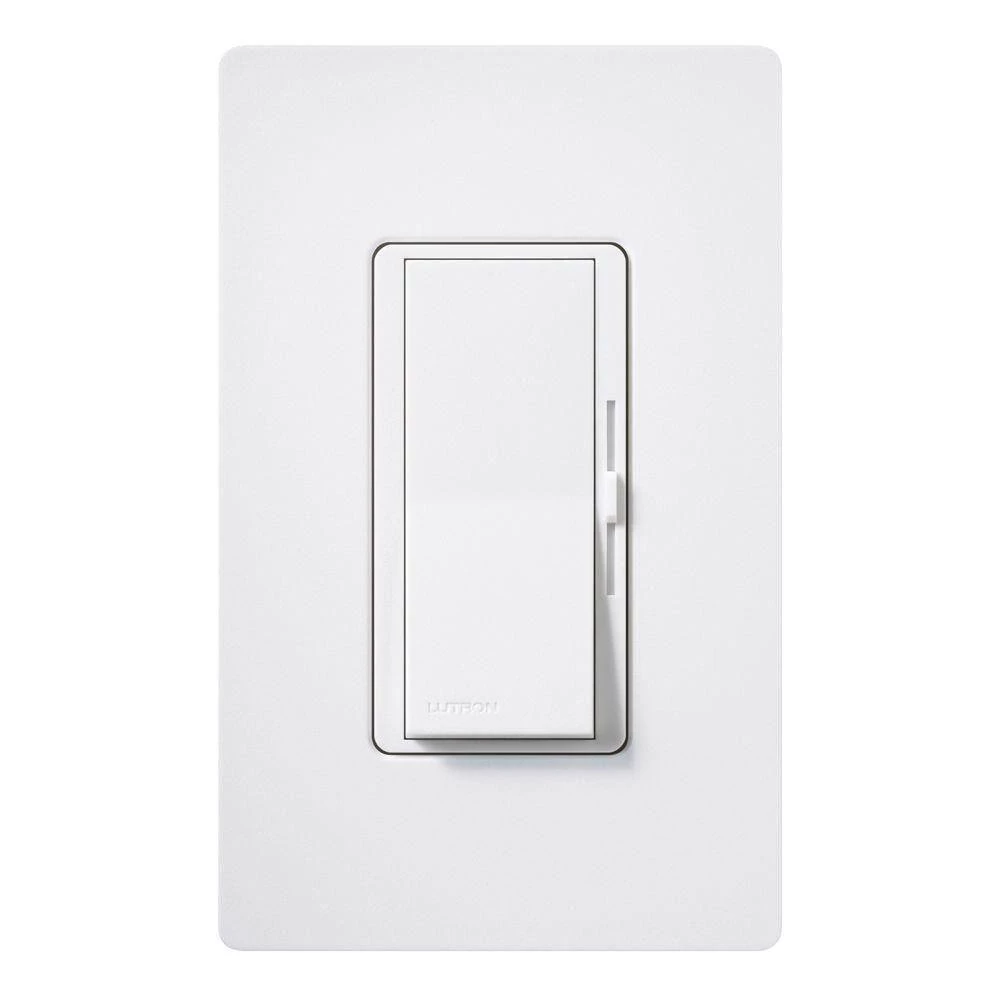 The Lutron Diva dimmer switch is a simple and elegant solution designed to match your existing designer opening switches and accessories. This Diva dimmer switch is for use in 600-Watt Magnetic Low-Voltage applications. You can easily turn the lights on and off with the paddle style switch. While the lights are turned on, use the slide control to adjust the lights to your desired level creating your perfect light. The paddle switch returns the lights to your favorite preset level. A soft locator light glows in the off position, making the dimmer switch easy to find in the dark. Installing a Diva dimmer switch is easy and saves energy too. You can replace your existing switch with a Diva dimmer switch in as little as 15 minutes. Then dim the lights just 50% to save 40% electricity and extend bulb life 10 times. Available in 7 Gloss Colors and 20 Satin Colors, your wall controls, wall plates and receptacles become beautiful accessories that let you create, coordinate, accent, blend and balance to express your true style. Compliment your Diva Dimmer and complete the look of your home with Claro screw less wall plates in your favorite Gloss or Satin Color, as well as other coordinating accessories, sold separately.