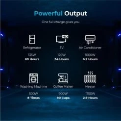 - Powerful output: the 4.8 kWh LYCAN with rated output 120-Volt can easily power most heavy-duty home and outdoor appliances with a continuous power output of 3500-Watt and peak power of up to 7000-Watt