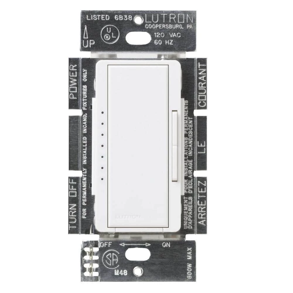 The Maestro Multi-Location Digital dimmer switch from Lutron allows you to dim a light fixture from multiple locations. The easy-to-operate tap switch turns lights on/off to your favorite light level or tap twice for full on. Press, hold and release the switch for delayed fade-to-off. Delayed fade-to-off gives you 10-60 seconds to leave the room or get into bed before the lights go out. Adjust the light level for any activity using the rocker. LEDs display the light level and glow softly in the dark, so you can easily find the control. Using Maestro dimmer switches and Companion Dimmers, you can control a single light from up to 10 locations – the perfect combination for controlling the lights at either end of the staircase or at both entrances to a room. Maestro dimmer switches are perfect for every room of your home. Coordinating Claro wallplates and accessories sold separately.