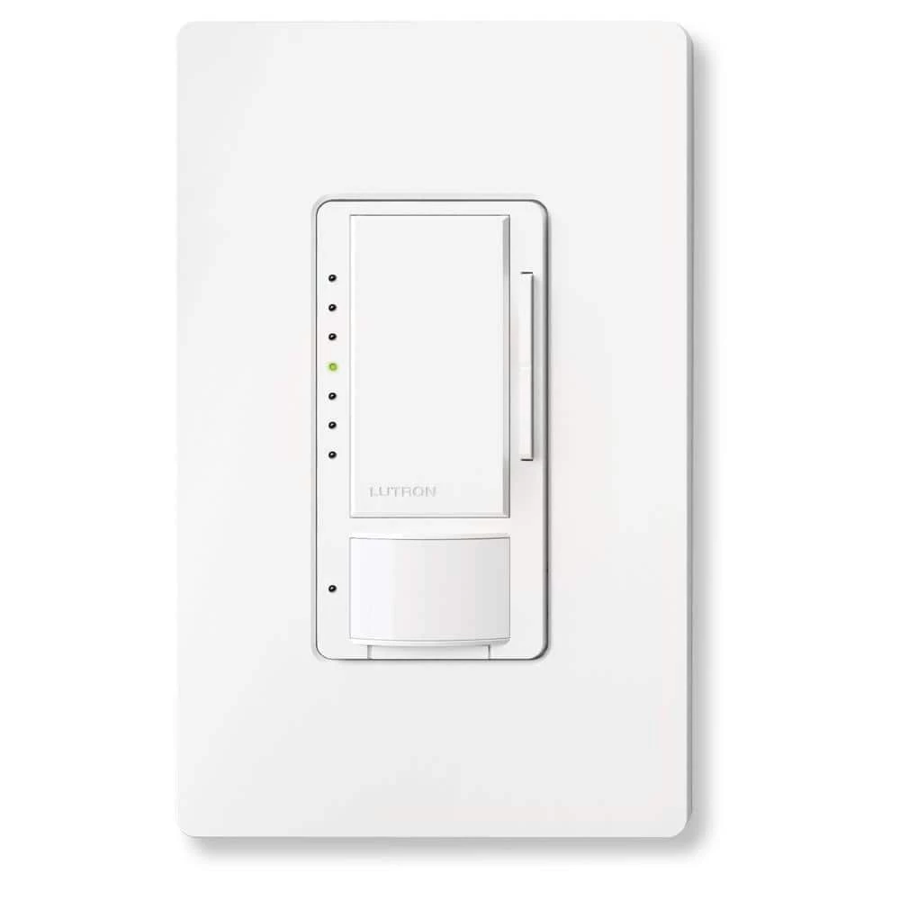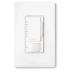 Coordinating Claro wall plate and accessories sold separately. Let Lutron Maestro CFL/LED Occupancy Sensing Dimmers turn the lights on and off to your favorite level. It’s a simple, easy, and low cost way to save energy and add light automation to your home. Install a Maestro Occupancy Sensing Dimmer and lights turn on when you enter the room, and then turn off automatically after you leave. The dimmer works just like a Lutron Maestro dimmer, gradually turning lights on and off, allowing your eyes to adjust to the new light level. Use the rocker to adjust the light level for any activity, or set the preset level to ensure lights always turn on to your desired light level. Equipped with ambient light detection, you can customize your sensing dimmer to detect daylight so lights don’t turn on with enough natural light in your room. Keeping the sleek design of the Maestro family, Lutron sensors will match the decor of any room in your home. Install it in the laundry room for added convenience when your hands are full, or in the kids’ rooms and never worry about lights being left on by mistake. Maestro Occupancy Sensing dimmers work with any bulb type, including dimmable CFLs and dimmable LEDs. This occupancy sensing dimmer can also be easily programmed to function as a vacancy (manual-on) sensor.