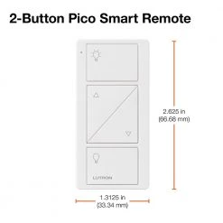 The Pico smart remote control is a convenient way to control Lutron Caseta Wireless dimmers. With the 2-button with raise/lower Pico you can turn lights on or off and brighten or darken them from anywhere in the room. You can use the Pico as a handheld remote, mount it on a wall or mount it on a tabletop pedestal. You can also use the Pico remote control to turn on the lights from the safety of your car as you arrive home.