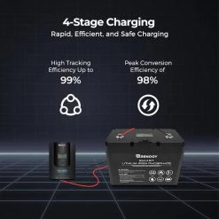 - Compatible with various deep cycle battery options: sealed, gel, flooded and lithium