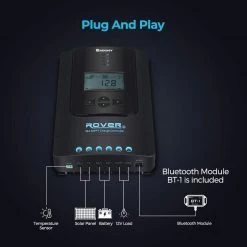 - RS232 port allows the rover to communicate with the BT-1 Bluetooth module, which can pair with the Renogy DC Home smartphone app, you may also connect the included USB converter cable from the port to a PC to use the solar monitoring software