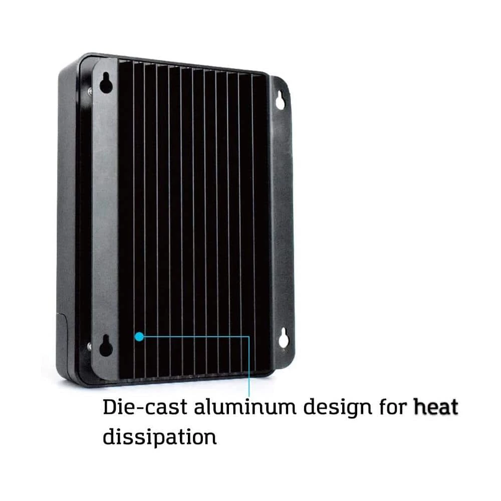Meet the newly redesigned 40A Rover MPPT Charge Controller. This smart charge controller is capable of conveniently self-diagnosing itself in the event of an error and can be used with the Bluetooth Module, Renogy BT-1. By pairing the Rover with the BT-1 and the DC Home app through Bluetooth, users can monitor and adjust their solar system straight from their phones. The Rover was also built tough with a die-cast aluminum exterior which allows for safe heat dissipation and general protection from wear and tear.