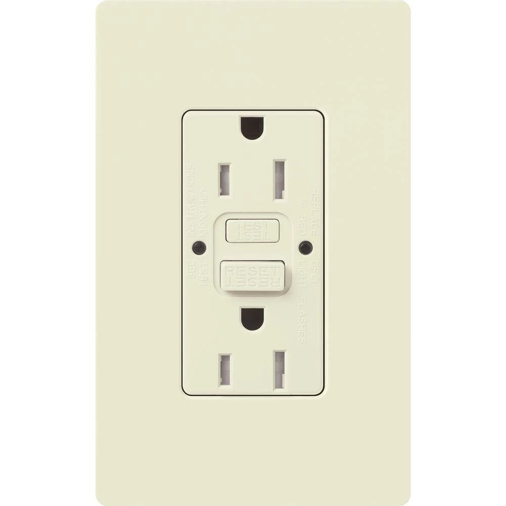 Coordinate your lighting controls and switches with receptacles to complement your decor. This receptacle has a test/reset button but also automatically checks every 30 seconds to see if it everything is functioning properly. There is an LED indicator that will turn red if the unit is no longer working as it should. There is also a tamper resistant shutter mechanism to prevent someone from sticking something into the receptacle and causing injury. Installing a receptacle is easy and can be done in as little as 15 minutes. Coordinating wall plate not included.