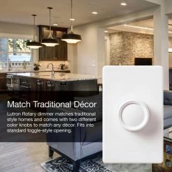 Lutron Rotary dimmer switches make it simple to set the mood for any occasion. This Rotary style dimmer switch has a knob that you push in to turn on and off and rotates to brighten or dim. It works in single pole applications, where the light is controlled from one switch. This dimmer switch is perfect for rooms like your kitchen and living room. Dim the lights in your kitchen for a romantic dinner or brighten them in the living room for family game night. The Rotary dimmer switch is easy to use and looks great in any room.