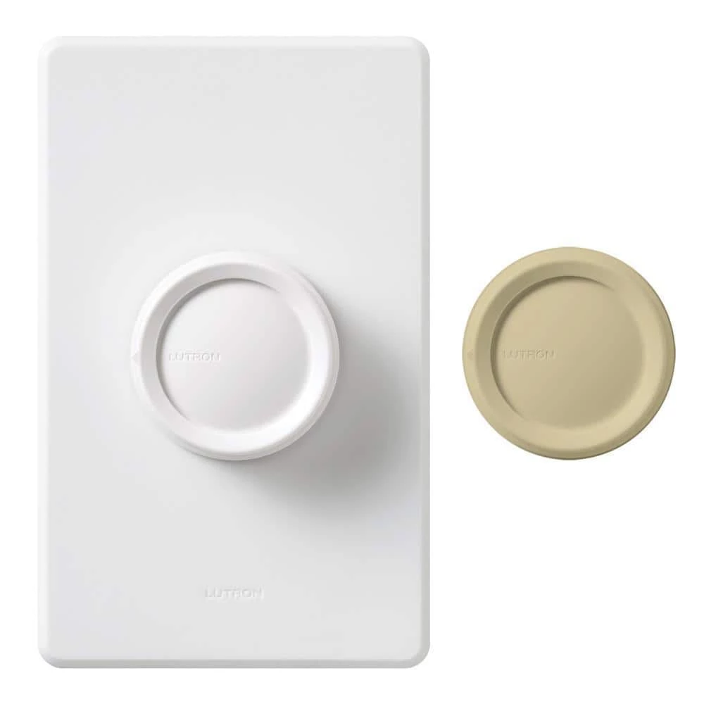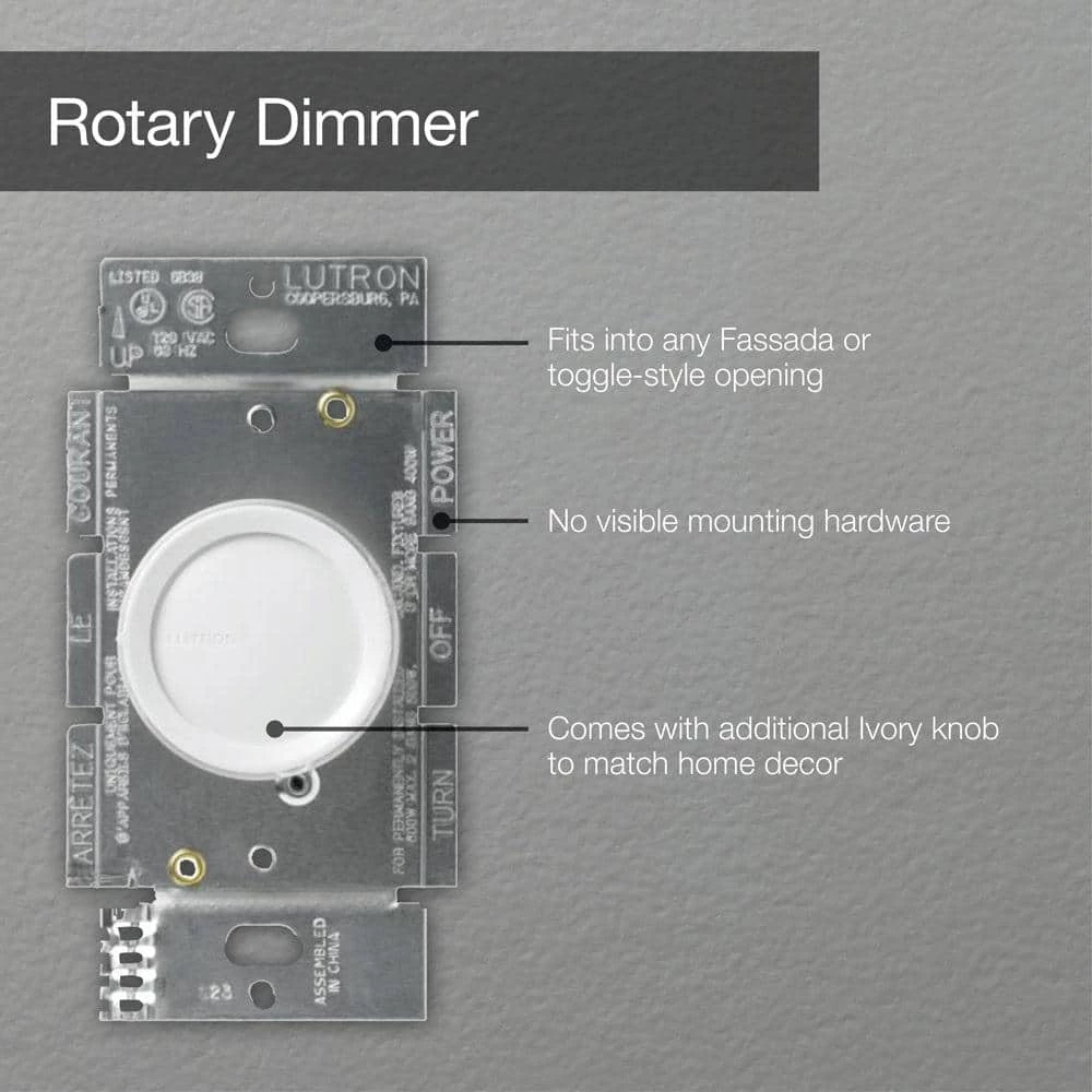 - Includes (1) rotary dimmer switch, (1) rotary knob in white, (1) rotary knob in ivory; coordinating Fassada wallplate sold separately