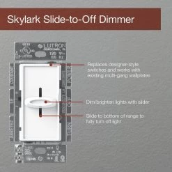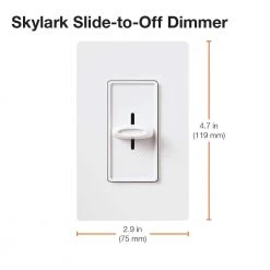 The Skylark dimmer switch is the original designer style slide dimmer switch from Lutron. Features a convenient rocker switch that turns light on/off. Easy to use slide control adjusts the light to suit any activity. Slide up to brighten, down to dim. Replaces any decorator style switch and works with existing multi-gang decorator wall plates. Coordinating Claro wall plates and accessories purchased separately.