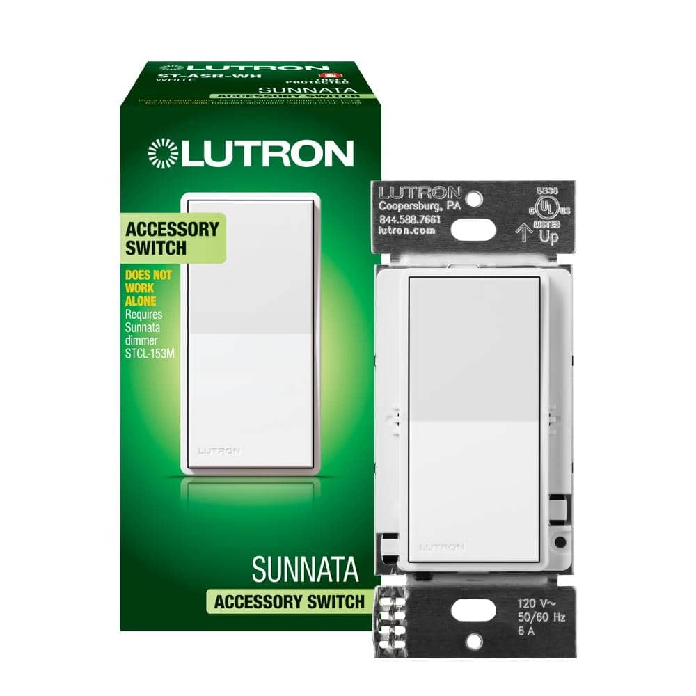The new Sunnata accessory switch allows you to expand the use of your existing Sunnata (STCL-153MH-xx only) and its advanced LED+ dimming technology to create 3 way and multi location applications. Control one light from two locations using the dimmer (sold separately) to dim and the accessory switch for on/off switching control. Add more accessory switches to control from up to 10 locations in a multi location application. Tap the switch once for your favorite light level, set by your Sunnata dimmer, and twice for full brightness. The smooth fade on and fade off allows your eyes to adjust comfortably to your determined light level; push and hold for 30 second delayed fade-to-off. No neutral required, wallplate sold separately.
