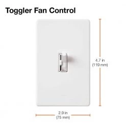 Toggler Fan Controls are designed to replace or match your traditional toggle style switches. Features easy to use toggle switch and small slide dimmer. Provides control of one ceiling paddle fan and 3 quiet fan speeds provide increased comfort. Shallow 1 in. deep back cover for easy installation. Fits into a traditional opening and works with existing multi-gang wallplates. Coordinating Fassada wallplates purchased seperately.