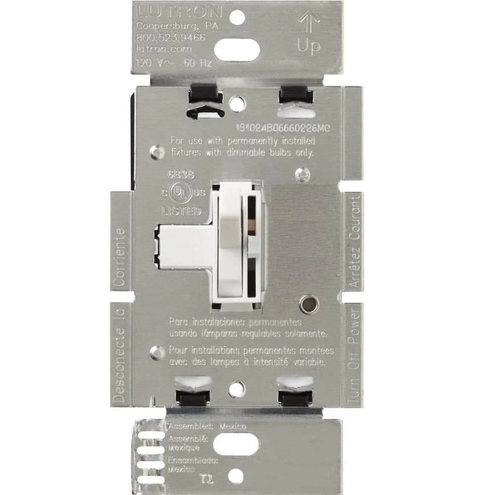 The Lutron Toggler 1000-Watt 3-Way dimmer switch is a simple and inexpensive way to add ambiance to any room in your home, while saving energy and extending bulb life. This dimmer switch is designed to replace or match your traditional toggle style switches. The discreet slider next to the toggle switch adjusts the brightness of the bulb to a desired level, while the toggle switch turns the light off and on to your favorite preset level. Convenient locator light glows softly in the dark when lights are off, acting as a nightlight and helping you to find the dimmer in a dark room. Designed with a shallow 1 in. deep back cover for easy installation, the Toggler dimmer switch works with your existing traditional multi-gang wall plates. Coordinating Fassada wall plates and accessories sold separately.