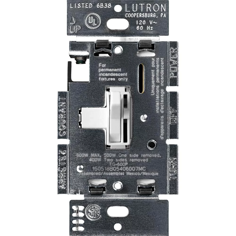 The Lutron Toggler 600-Watt Single Pole dimmer switch is a simple and inexpensive way to add ambiance to your bedroom or other room in your home while saving energy and extending bulb life. The slide dimmer varies the brightness of the bulb to a desired level, and the toggle switch turns the light off and on to a preset level. This dimmer switch is designed to replace or match your traditional toggle style switches. Designed with a shallow 1 in. deep back cover for easy installation, the Toggler works with your existing traditional multi-gang wall plates. Coordinating Fassada wall plates and accessories sold separately.